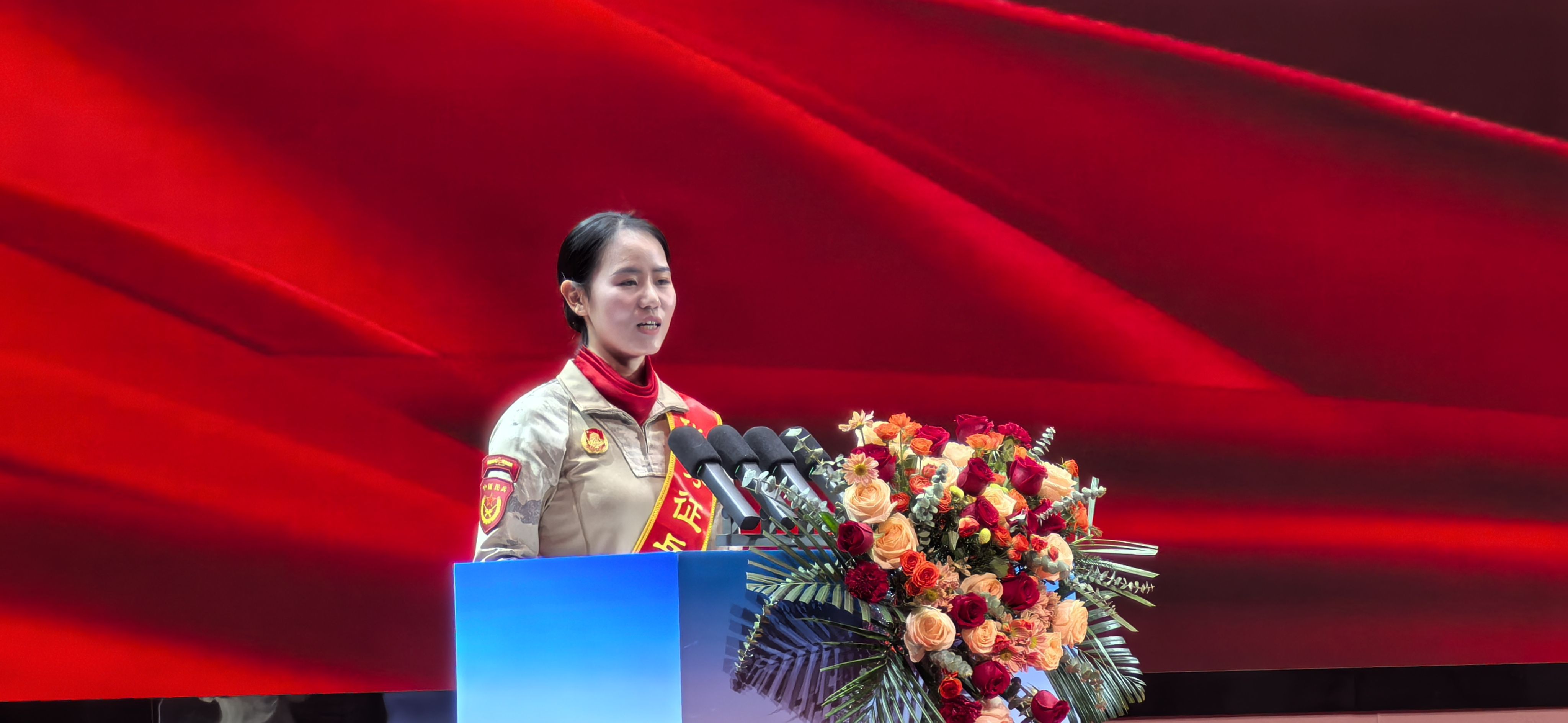 现役士兵代表李韵秋作宣讲。 长江日报记者陈其雄 摄。