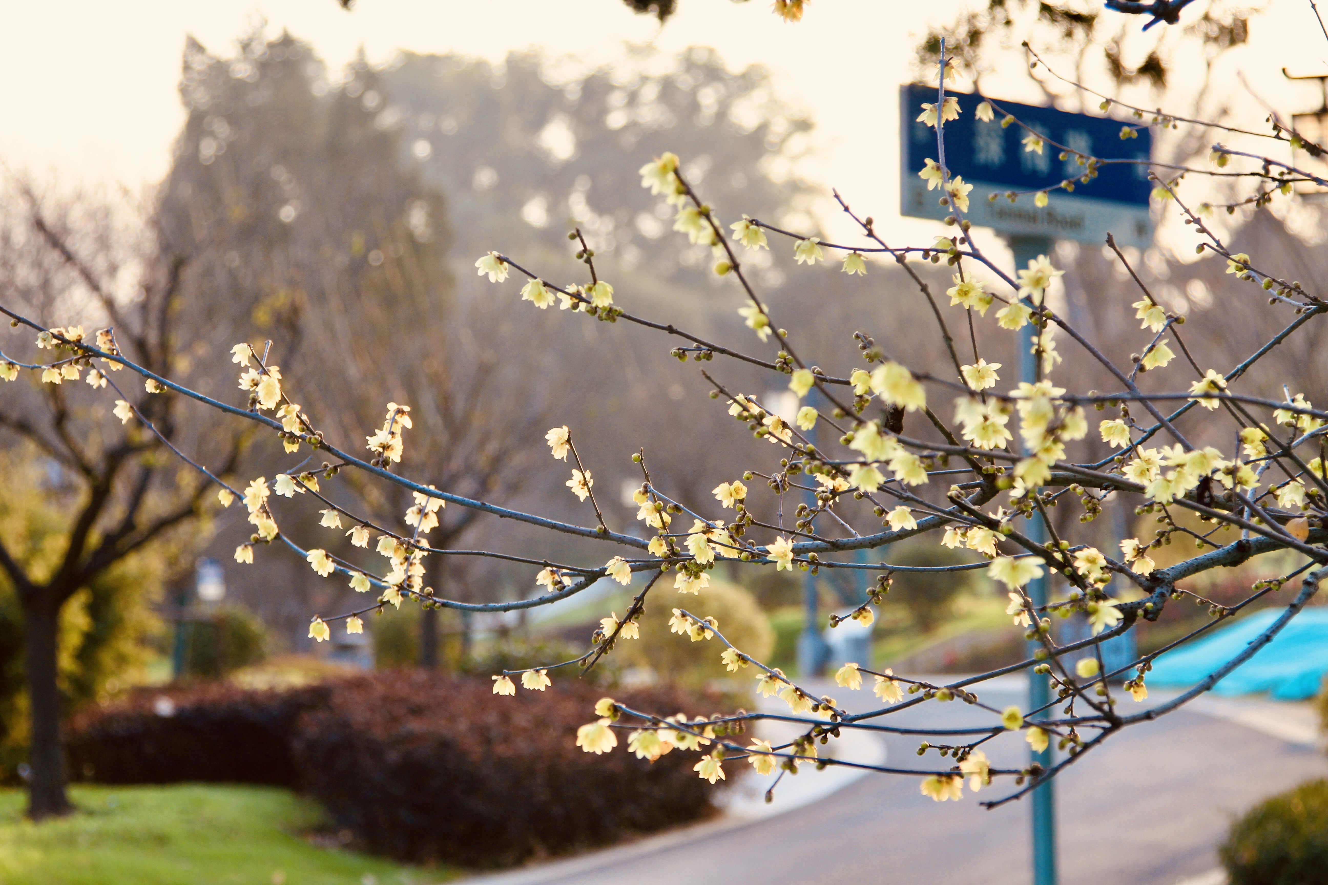 东湖梅园蜡梅绽放。