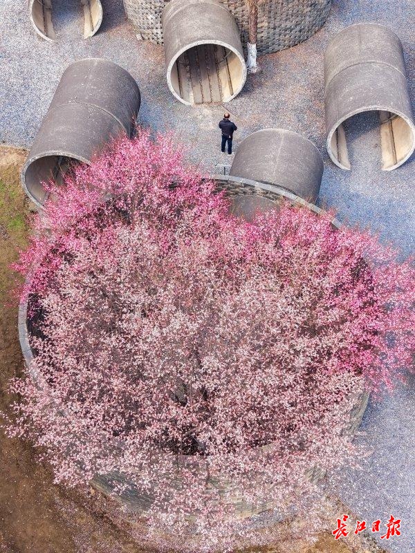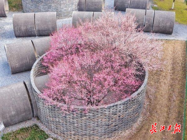 长江日报大武汉客户端1月16日讯(记者明眺生 通讯员徐志刚)一座砖墙环绕的小院,顶部开满梅花,远看酷似一只超级“花篮”。1月15日,长江日报记者在武汉园博园大师园一角,见到这一充满巧思的冬日胜景。