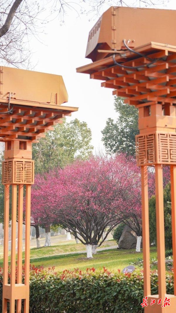 武汉园博园种有550余株梅花,主要分布在北区的铁锈长廊附近、荆山西侧、东区的摩天轮附近,目前园内宫粉梅、朱砂梅、玉蝶梅、绿萼梅已绽放。该园第十届园博园花灯会已布展就绪,将于1月28日开放。