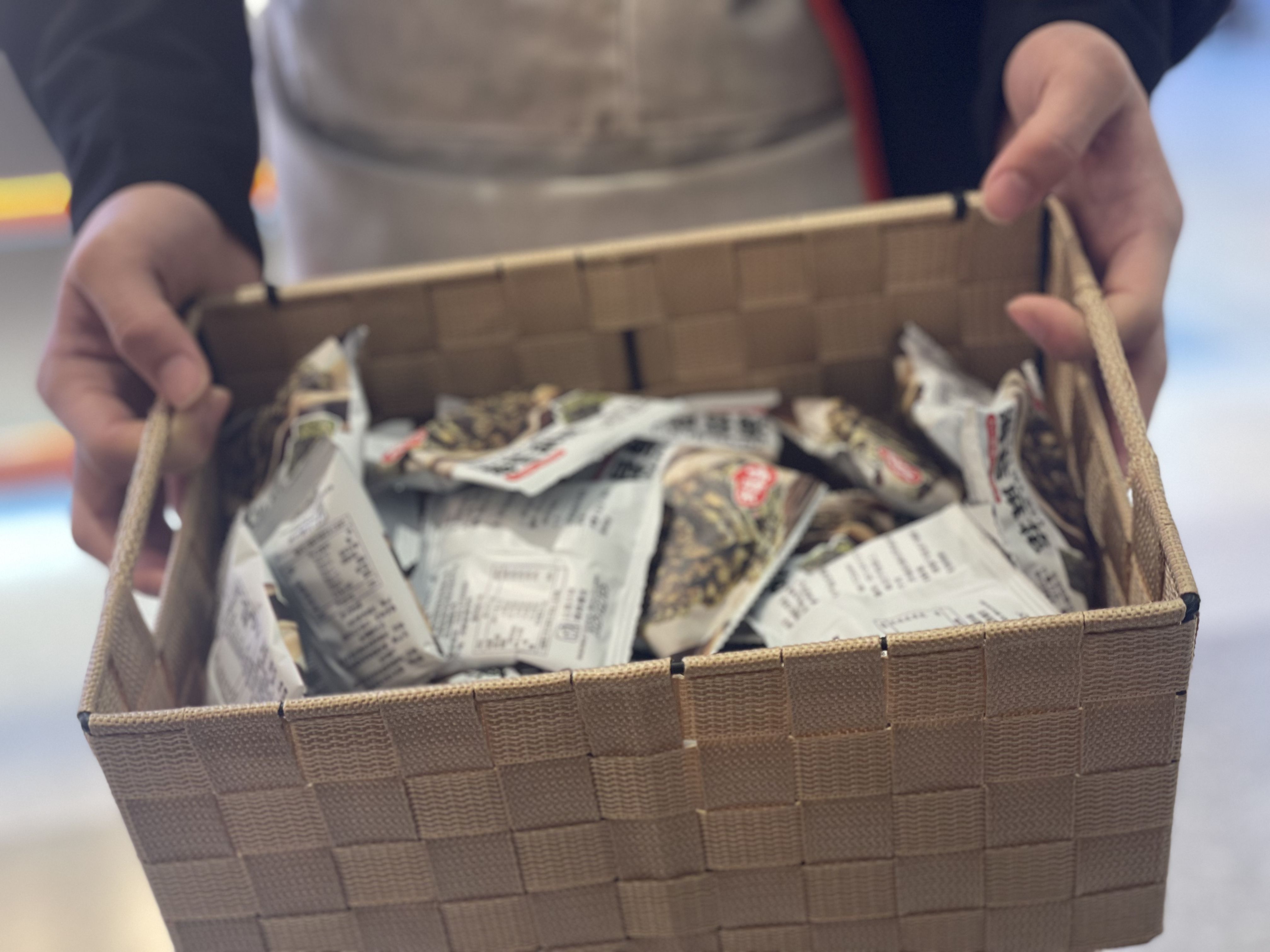 现场派送零食茶水等“机舱服务”,消解排队焦虑。记者周满珍 摄