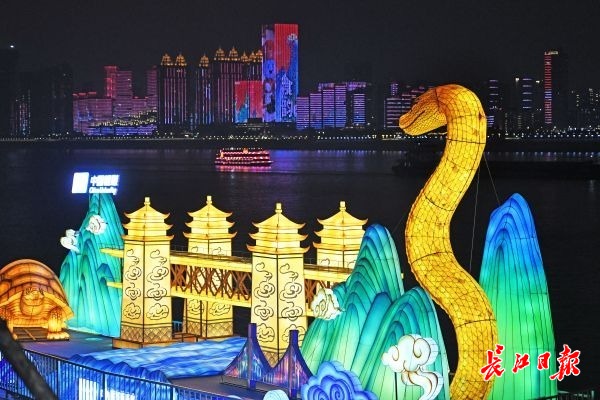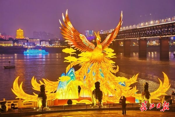 2月9日,2026武汉新春晴川灯会亮灯调试,不少市民提前来到汉阳大禹神话园先睹为快。从2月10日(小年)至3月8日,2026武汉新春晴川灯会将在汉阳江滩大禹神话园举办,游客可免费入园。其中,高达12米的“凤舞九天”与对岸黄鹤楼遥相呼应;《长江幻境》沉浸光影秀,以龟山电视塔为背景,现场演绎长江文明。