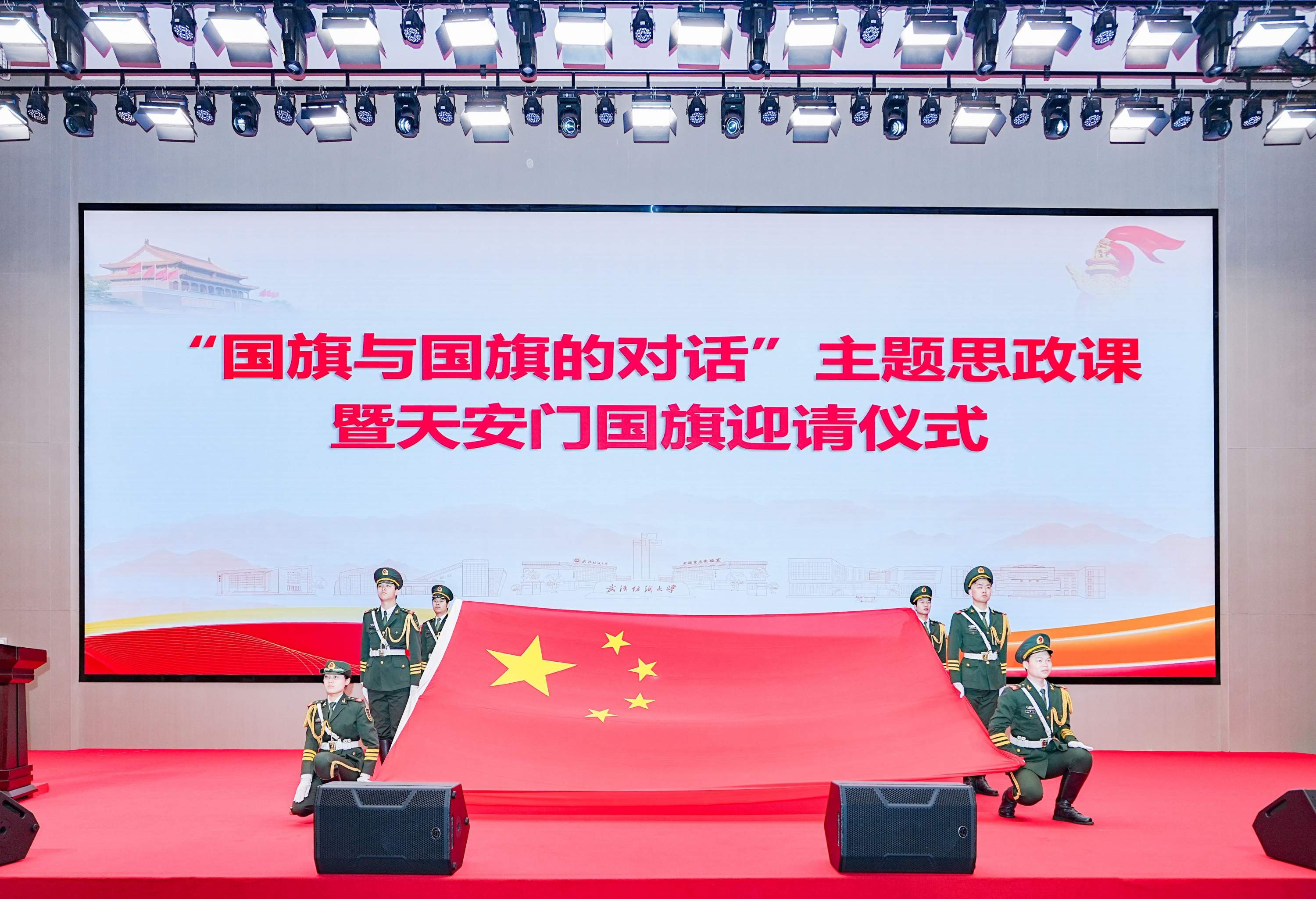 长江日报大武汉客户端3月17日讯(记者陈晓彤 通讯员郑婷)一侧是曾在天安门广场前见证日出东方的五星红旗,另一侧是曾在月球上展开的月面国旗同款,3月17日,在武汉纺织大学“国旗与国旗的对话”主题思政课上,天安门国旗和月面国旗在武汉同框了。