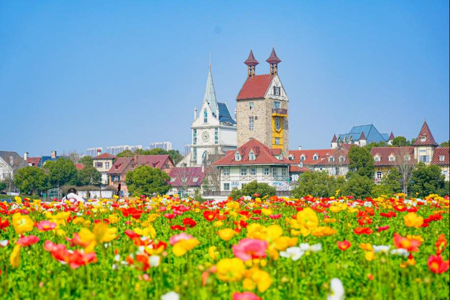 与此同时,花博汇的生态底色正绽放出最绚烂的春意。千亩花海中,郁金香、虞美人、二月兰等花卉铺展出缤纷画卷,与欧式钟楼、观光小火车等景观相映成趣,构成踏青赏景、露营休憩的绝佳背景。