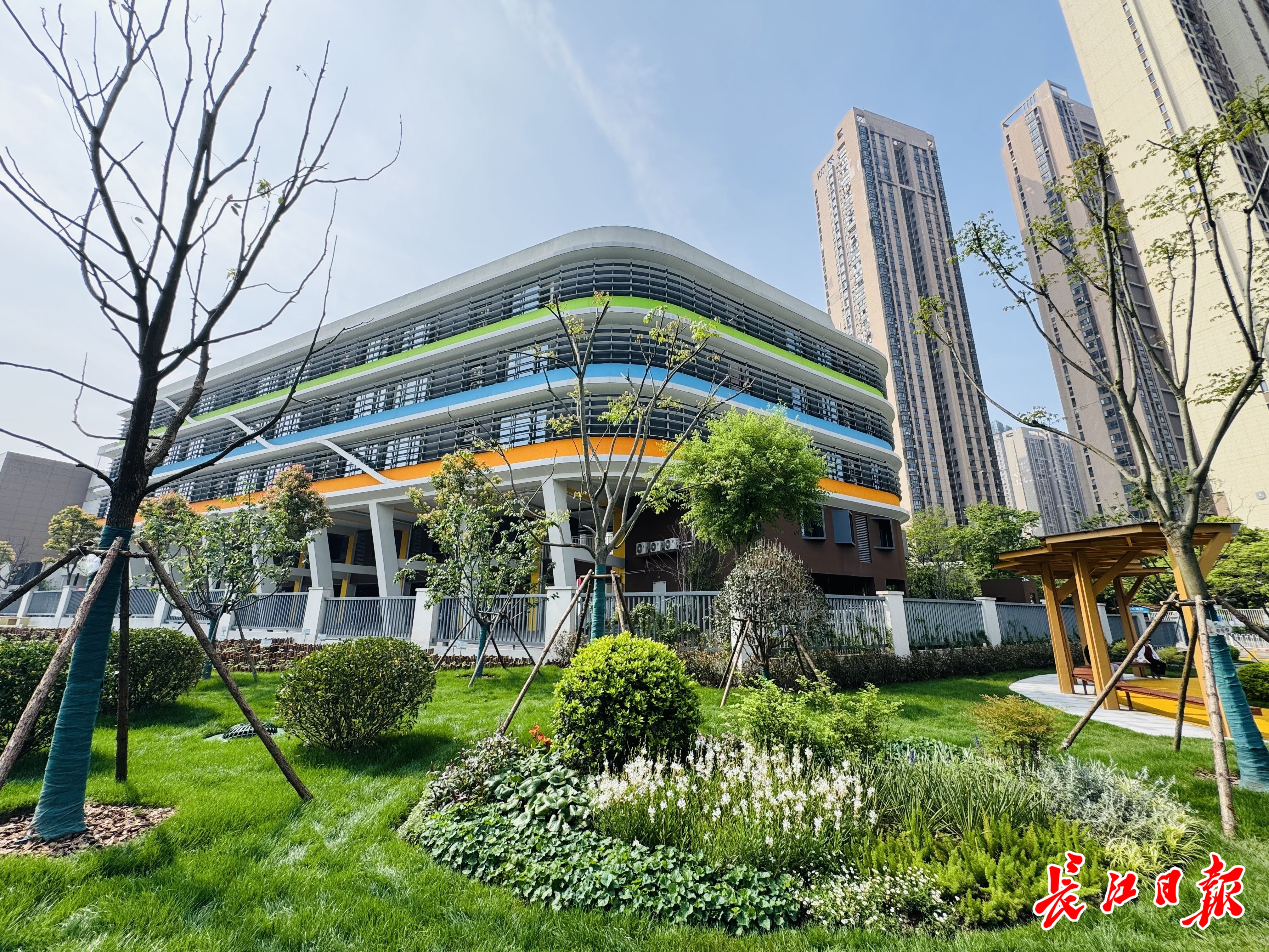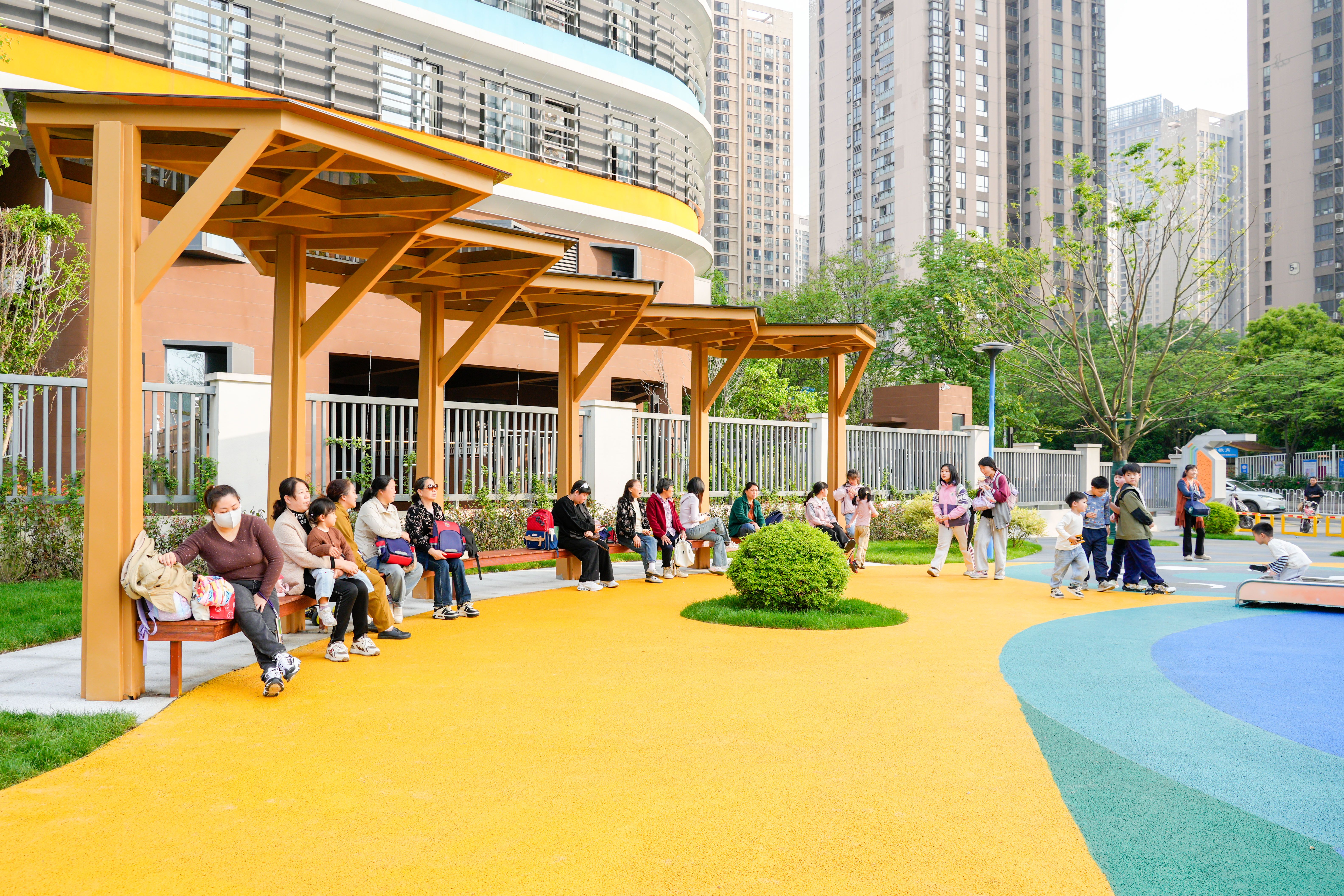 星河公园为家长们提供接送孩子的休息区。通讯员供图