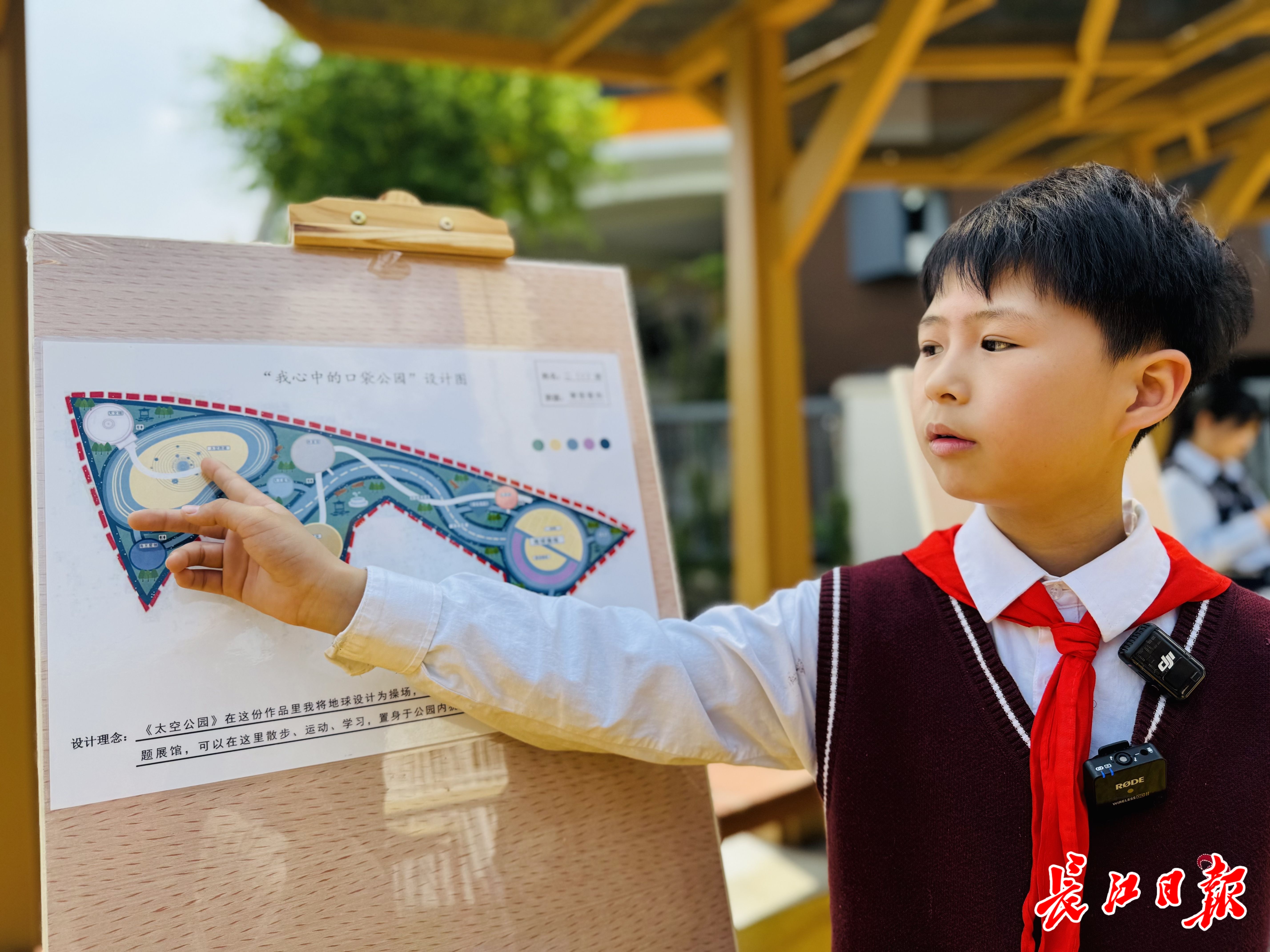 记者从江汉区城管执法局了解到,这片总面积约1万平方米的地块最初设计仅为普通综合性公园。然而,考虑到附近红领巾学校优雅校区的地理位置,他们萌生了一个大胆的想法——邀请孩子们共同参与设计。去年暑假,学校发起“我心中的口袋公园”设计图征集活动,共收到300多份充满童趣的作品。