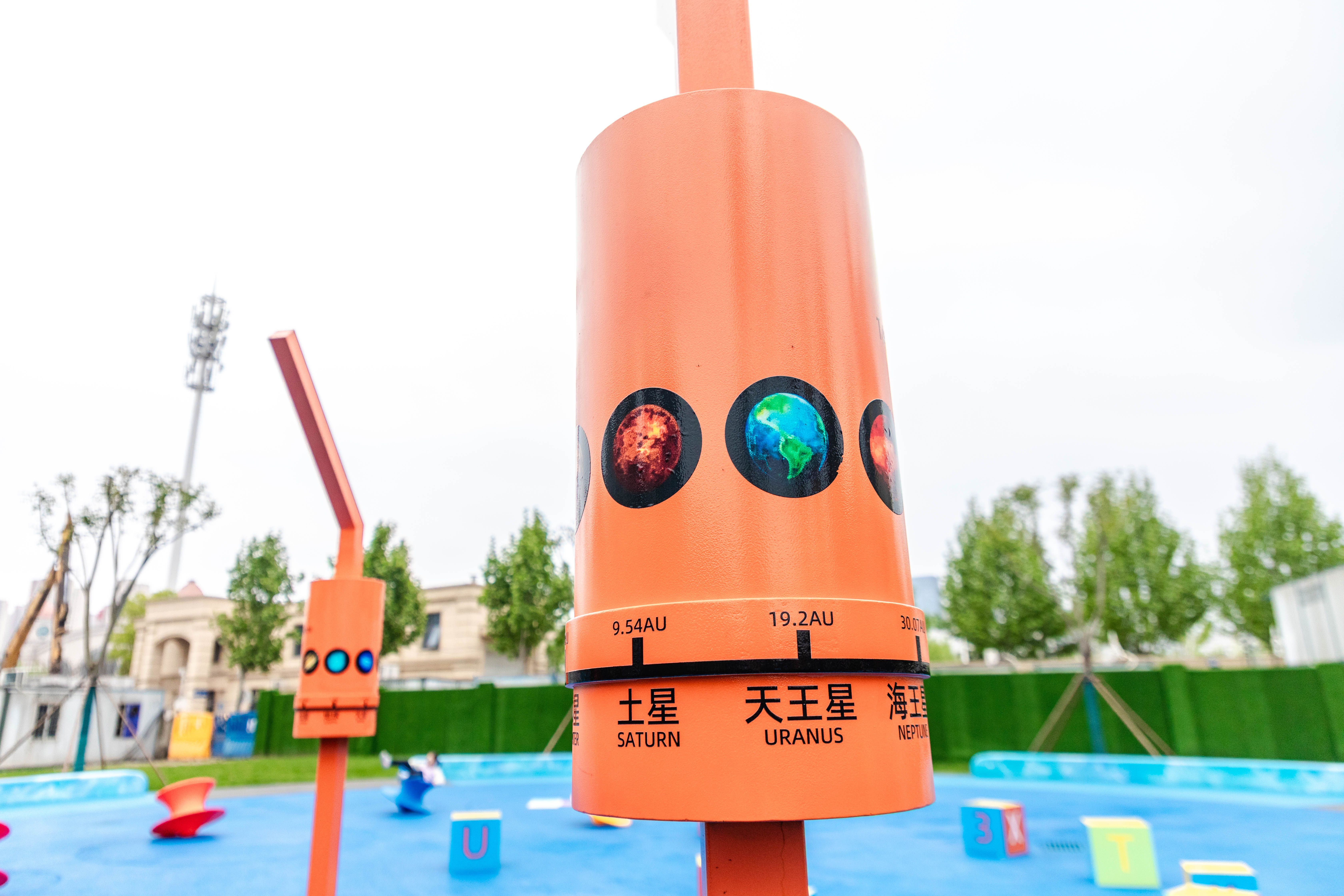 为了让复杂的天文知识变得通俗易懂,张扬与科学老师冯雅慧反复推敲,将繁复的理论转化为有趣的互动体验。在“地球家园”区域,孩子们可以通过地球仪、日晷和圭表了解二十四节气;而在木星广场,作为太阳系中体积最大的行星,这里不仅拥有公园面积最大的活动广场,更是家长接送孩子的理想集散场所。