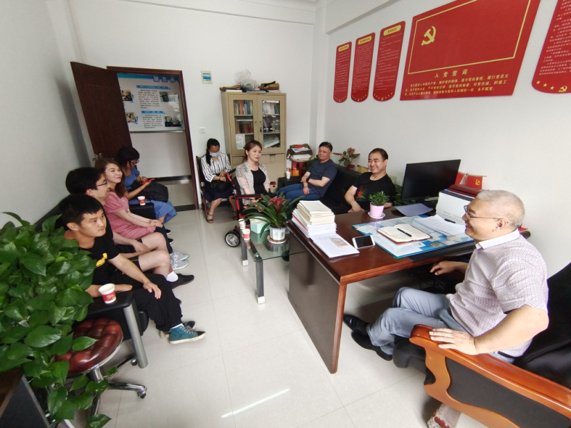 直播班学员代表给省残疾人职业培训中心送来锦旗表示感谢,肖主任和学员们进行座谈。通讯员供图