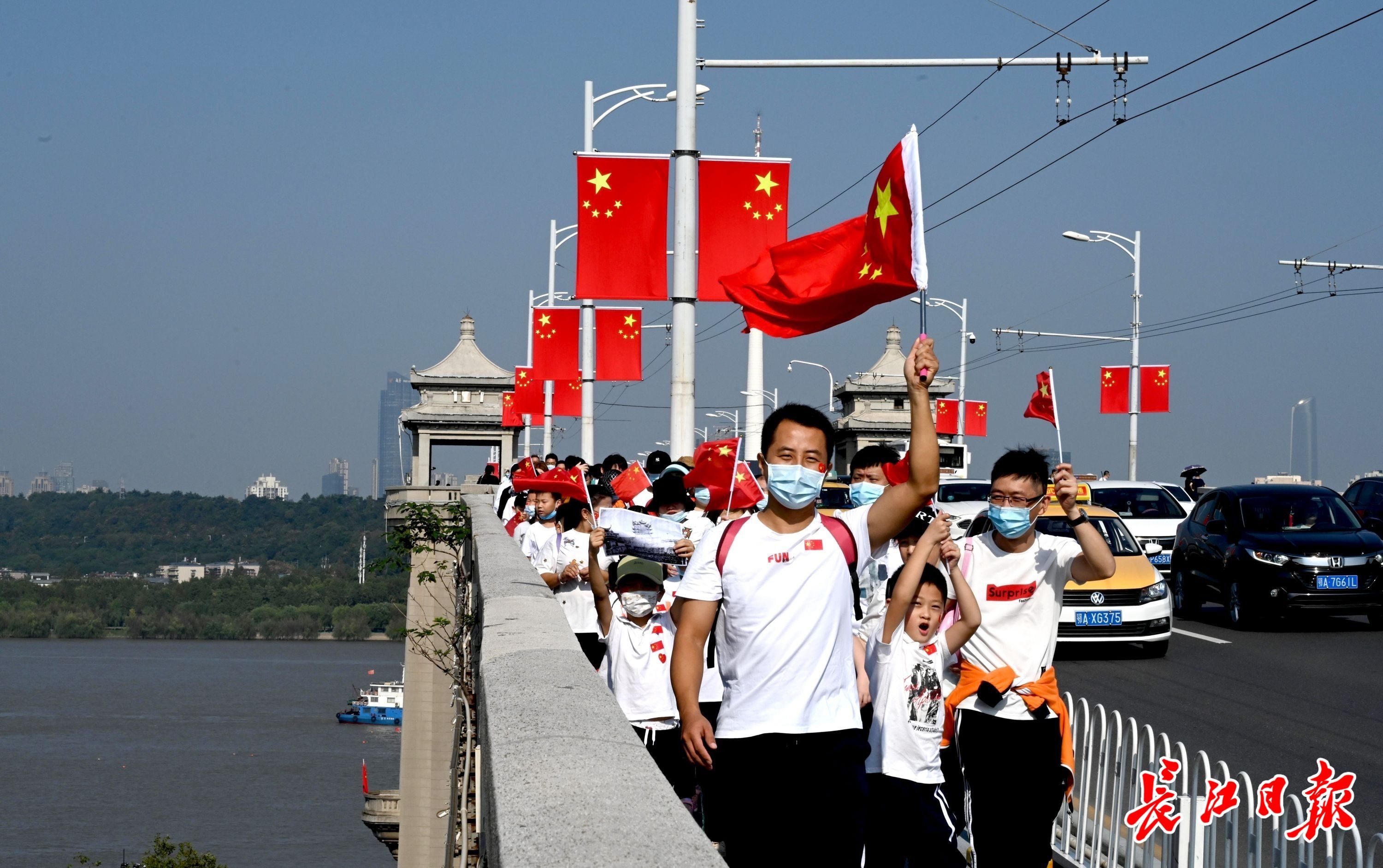 2020年10月1日,天气晴好,国庆中秋“喜相逢”,在武汉长江大桥上,来自全国各地的游客幸福地畅游。长江日报记者金思柳 摄