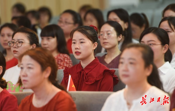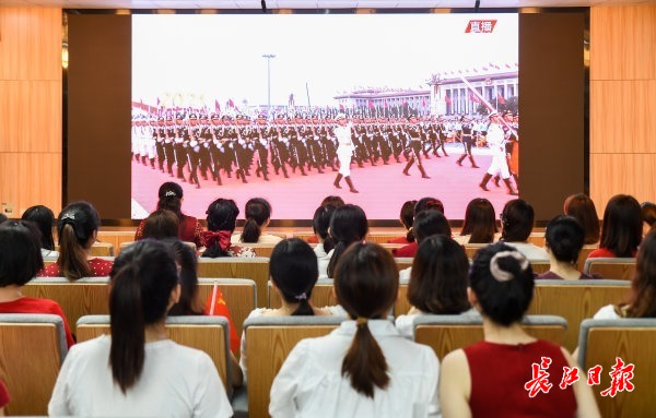 武昌实验中学沙湖学校老师观看庆祝中国共产党成立100周年大会现场。记者 许魏巍 摄