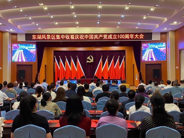 东湖风景区党员职工集中收看庆祝建党100周年大会。