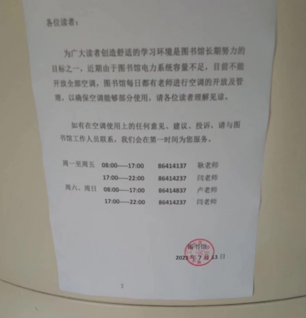 7月13日,学校紧急开放部分场馆作为临时纳凉点。