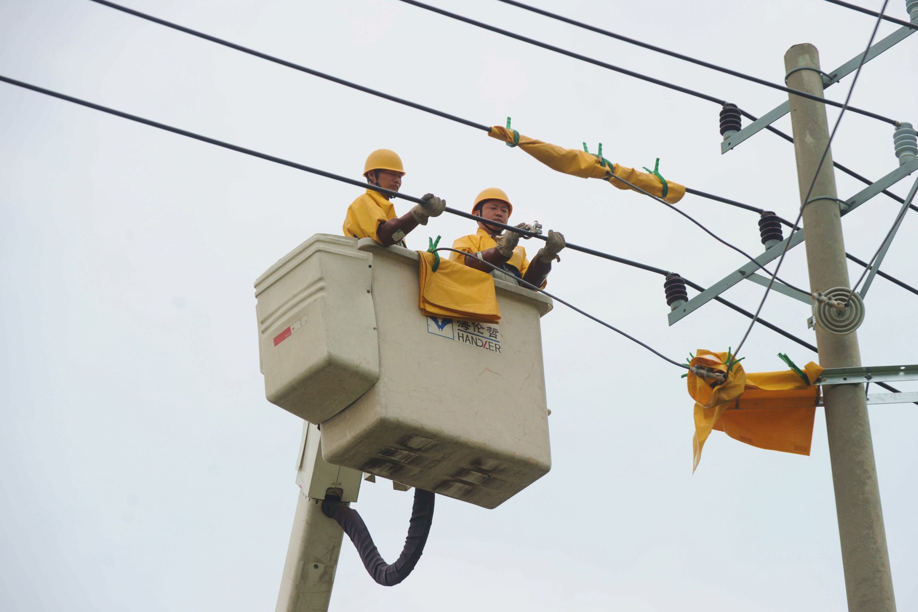 国网汉川市供电公司带电作业人员冒着高温对湖北祥丰裕供应链管理服务有限公司进行作业。通讯员余健兵 摄