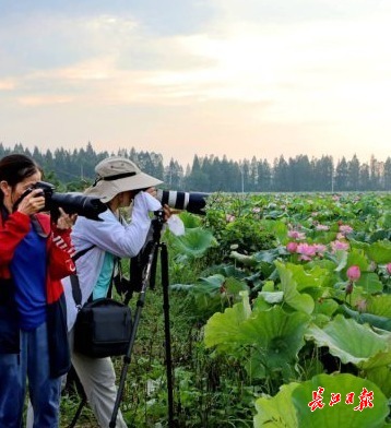 21日,东西湖区辛安渡办事处红星大队太空莲荷花盛开,前来赏花、采莲的市民络绎不绝。通讯员郭贤乐 摄
