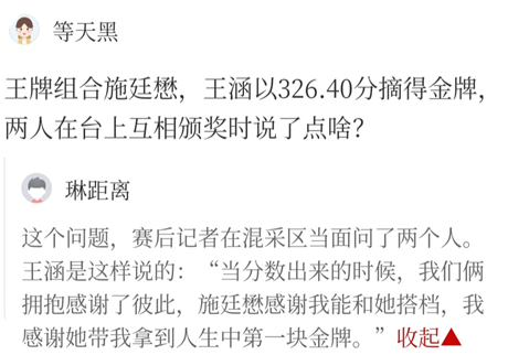 7月25日,中国选手王涵(右)在颁奖仪式上为队友施廷懋戴金牌。新华社记者许畅 摄