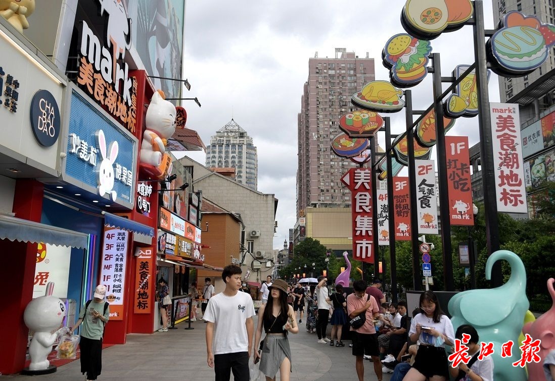 位于江汉路北端入口的食集,吸引年轻人打卡。长江日报记者刘斌 摄