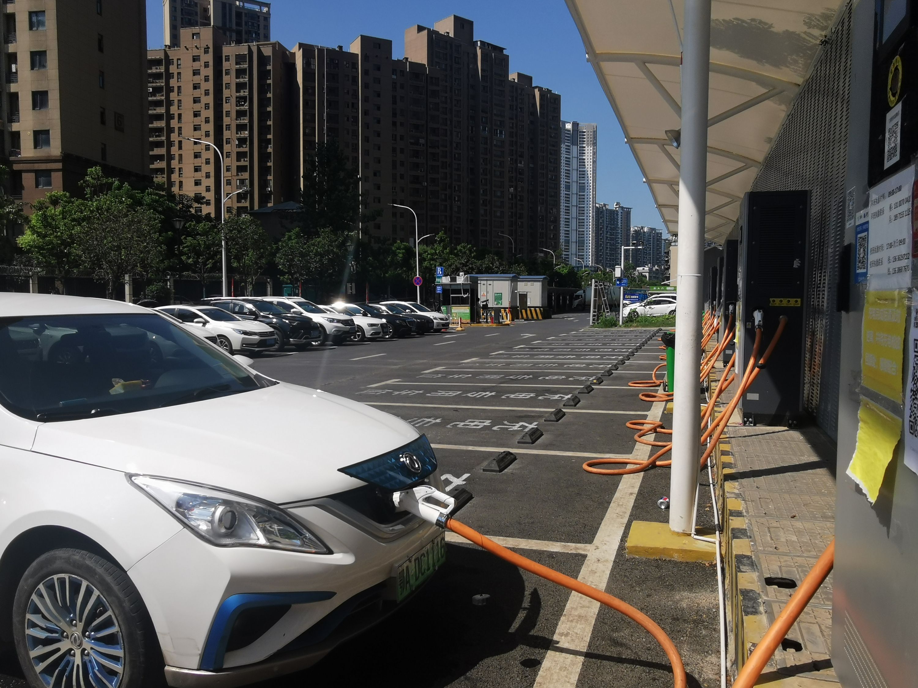 停车场内车辆有序停放,新能源车正在充电。记者陈永权 摄
