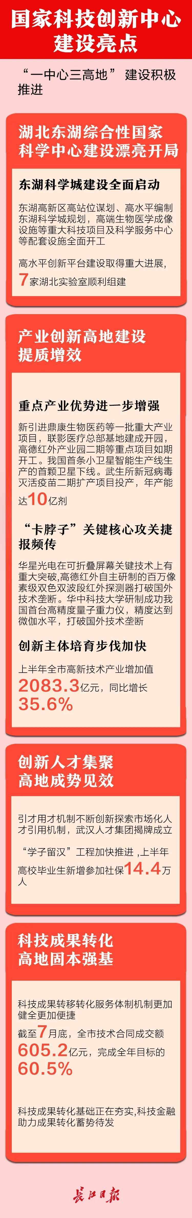 做强创新之核,加快培育武汉战略科技力量。加快建设东湖科学城和以东湖科学城为核心的光谷科技创新大走廊。高标准推进湖北实验室实体运行,争创国家实验室。推动现有国家重点实验室优化重组,优化提升一批科技创新平台。推动重大科技基础设施群集聚发展,加快精密重力测量等设施建设,积极推进作物表型组学等设施预研预制。加快推进世界一流大学和一流学科建设。