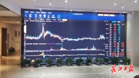 位于湖北碳排放权交易中心碳交易K线图。 长江日报记者陈永权 摄