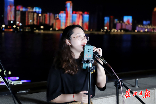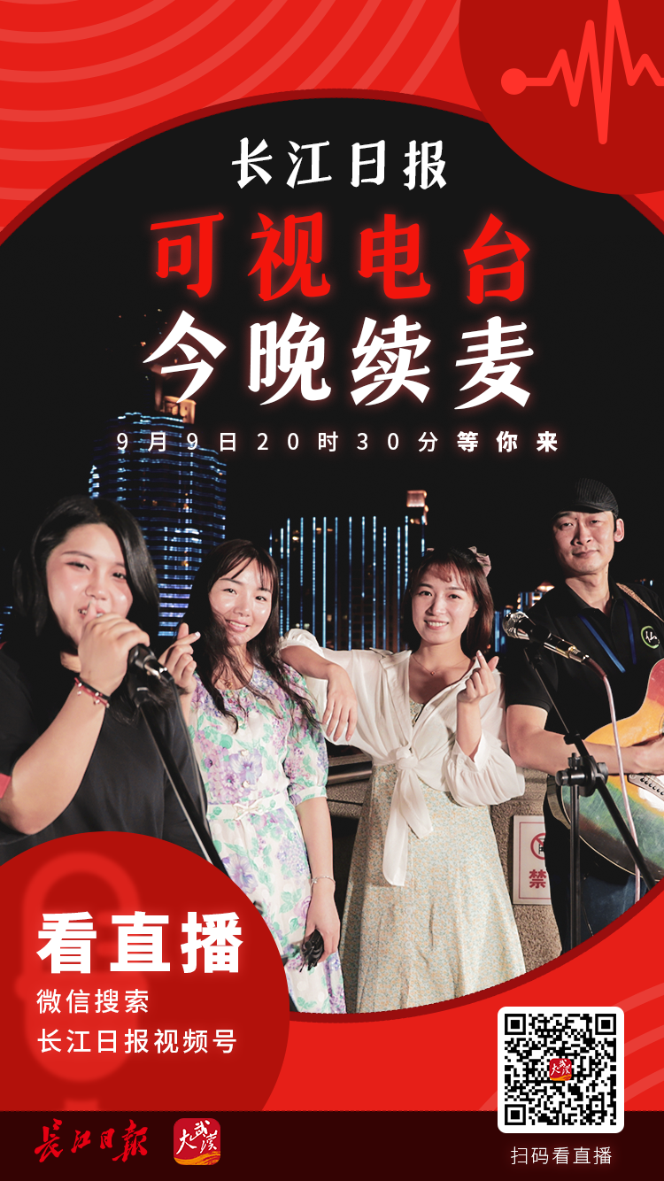 长江日报大武汉客户端9月9日讯(记者范雅琴)夜色深深,闪亮的灯火同跳动的音符相呼应。告别一天的忙碌,9月9日晚,长江日报“可视电台”在汉口江滩横渡长江博物馆顶楼火热开麦,这是“可视电台”开播的第9天。当晚,线上线下好不热闹,直播现场不仅有原创音乐人,还有音乐爱好者,以及带朋友来返场的嘉宾。网友们在直播间踊跃互动,点赞刷屏,并表示明晚要继续锁定节目。