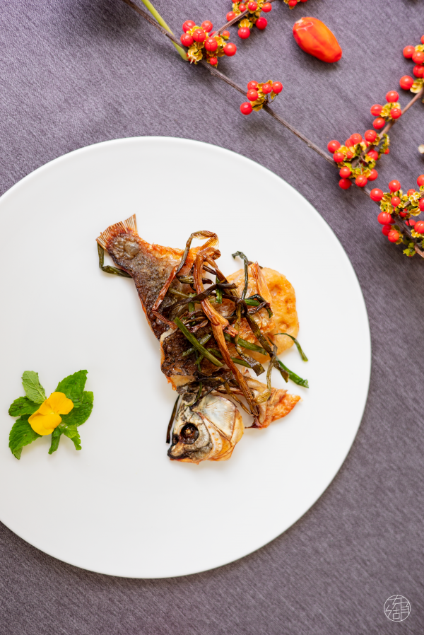 除了摆盘十分考究外,在口味上也是尽显国宴品质。在“湖滨楚宴”中,不同种类的鱼在五位大师手下,碰撞出了耀眼的火花。由卢永良掌勺的黄金扒鮰鱼肚,以新鲜的鮰鱼肚煨制而成,胶质感浓厚,口感肥糯;由涂建国制作的酥香阳干鲫鱼,采用传统湖北“糍粑鱼”做法,将鱼腌制两天后晒太阳,再辅以煎、烹技法,鲫鱼片交错叠放,配以青翠绿叶,颇有层峦叠嶂的山水意韵;出自孙昌弼之手的小笼粉蒸鮰鱼,以母鮰鱼、米粉为主原料蒸煨做成,晶莹剔透,鲜爽滑嫩……在场宾客纷纷沉浸在美食与美景中,不时点头称赞,百份楚菜佳肴被食客一扫而空。