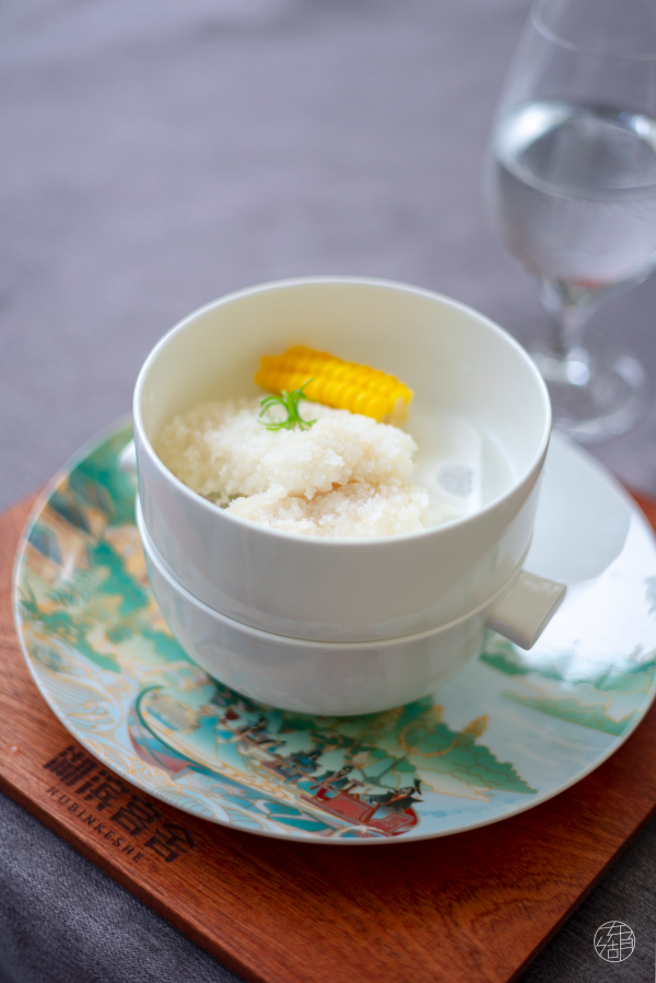 一场楚宴如同一场艺术画展。厨师用勺作画笔,以餐盘为画纸,将秋的韵味、花的清香展现在方寸之间,冷前菜“东湖秋色”特以椒麻鲜鲍、秘制熏鱼、卤牛肉、卤蹄花、蒜拌黄瓜为源,组以山丘之状。配以荷花图样,满载一船秋色,让食客以己入画,于饮食间,感东湖秋色之趣。