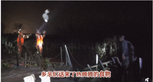 而在抗洪抢险第一线乡亲们更是连夜赶制了热气腾腾的食物,即便隔着洪水也要抛过去,让战士们感受到大家的温暖。