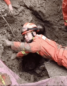 大雨让路面发生沉陷,一名女子不慎坠坑,下半身被泥石卡住,动弹不得。消防员将头埋进淤泥中做支点,用身体撑起了一道“桥”,并对身边人喊道:“踩住我!”