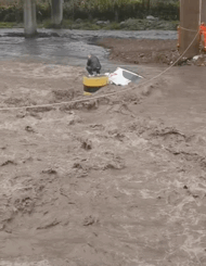 山西阳泉一男子驾车被冲走,万分危急时刻,消防员顶着激流的洪水,通过滑索来到男子身边后,跪在地上展开救援。