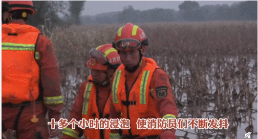 在不足10度的气温下,浸泡冰冷刺骨的洪水中,许多消防员们冻得直发抖。经过10个小时奋战,决口成功合龙。