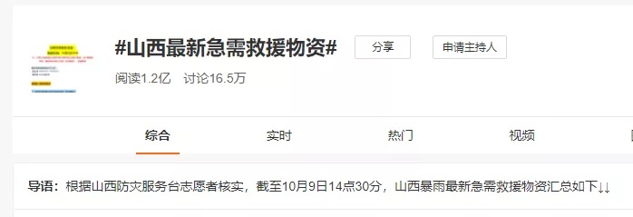 受灾地区急需的物资被上亿人关注与转发,大家都期盼着受灾的山西人民尽快得到及时精准的救援与帮助。人说山西好风光,守望相助,风雨同舟,期待这次的暴雨洪灾尽快消退,重现山西好风景!