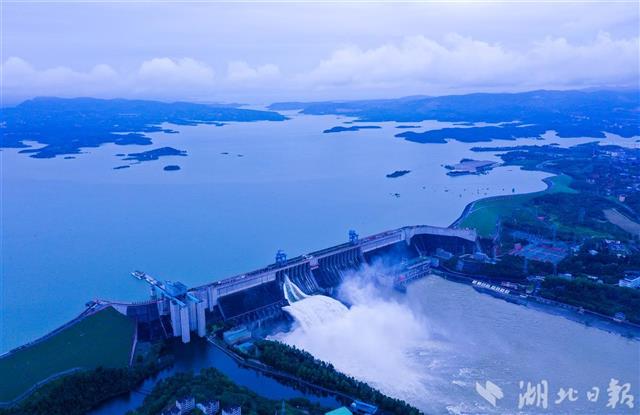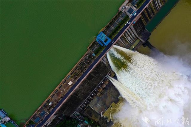 由于上游来水加大,丹江口水库开一高孔泄洪,出库流量1820立方米/秒,大坝运行一切正常。
