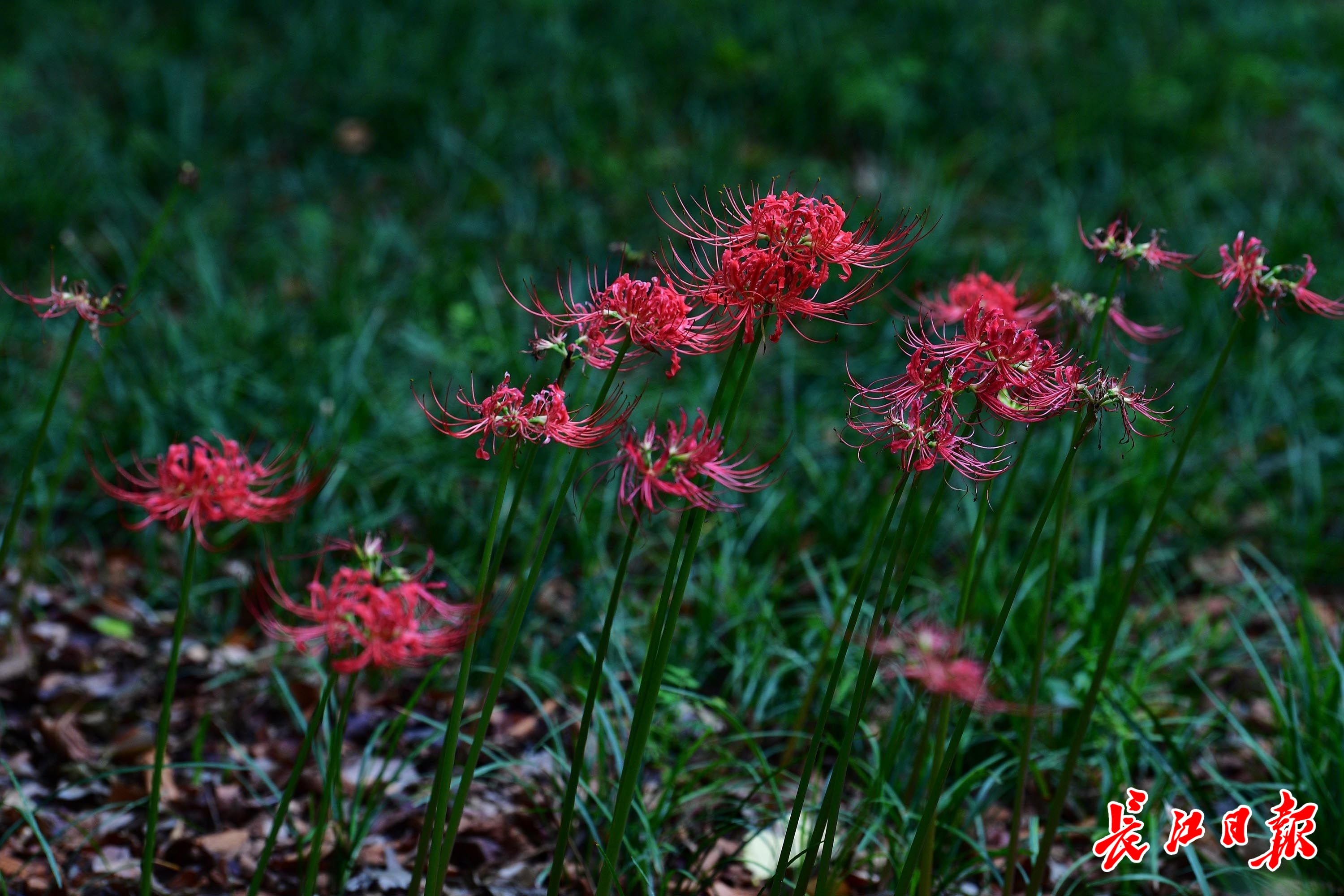 10月12日,园博园内,果熟蒂落的彼岸花纷纷长出形青绿色叶片。但仍有一些彼岸花正在盛开。记者李永刚 摄