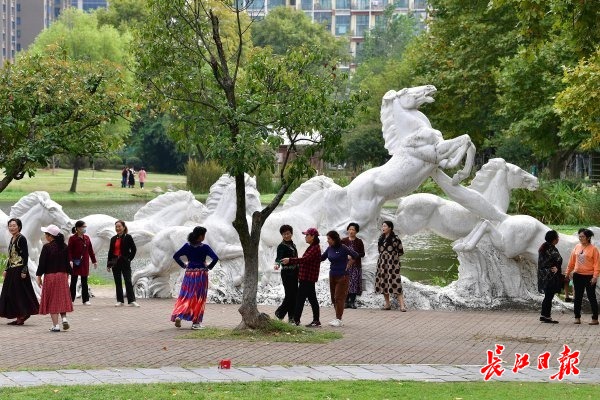 10月13日,解放公园白马雕塑前,锻炼休闲的市民。记者李永刚 摄