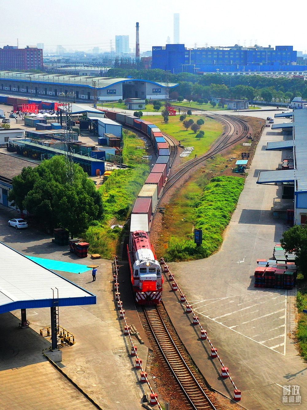 2021年9月28日,中欧班列“上海号”成功首发,目的地是德国汉堡。该趟班列主要装载服装鞋帽、玻璃器皿、汽车配件、精密仪器等外贸货物。(图/视觉中国)