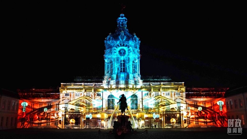 2021年9月3日,以“开创未来”为主题的第17届柏林灯光节开幕,约70处地标建筑被光影点亮。这是柏林夏洛滕堡宫。(图/视觉中国)