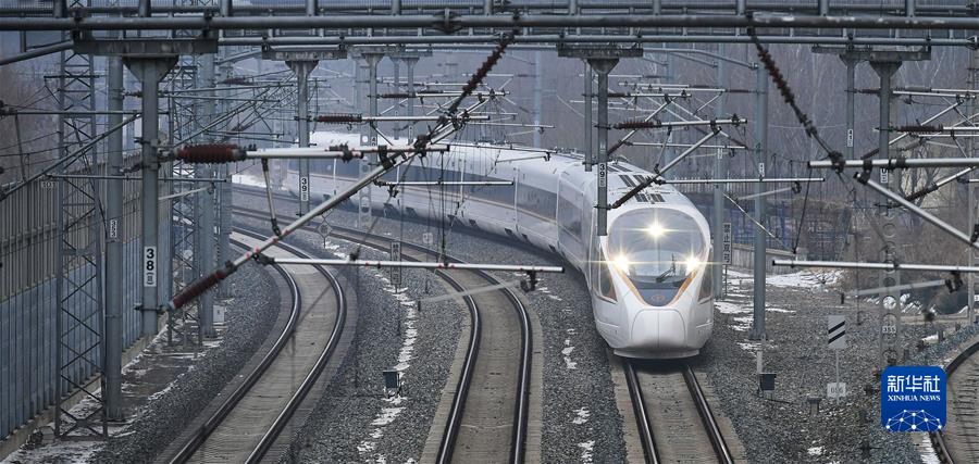 1月22日,一列从沈阳北站开往北京朝阳站的复兴号列车行驶在京哈高铁线上。新华社记者 杨青 摄