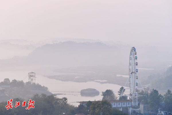 10月23日清晨,在黄陂区王家河,高楼远眺下的村镇和山林被笼罩在一片晨雾之中。 长江日报记者喻志勇 摄