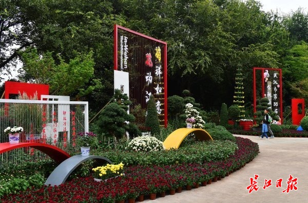 10月26日,沙湖公园菊展多个大型主题扎景已完工,工作人员正在进行摆花、养护等收尾工作。记者李永刚 摄