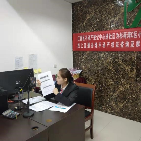 伊托邦麓山郡小区位于五里界街锦绣大道,远离江夏城关地区,距离江夏区办理不动产证的市民之家10公里左右,若乘坐公交前往,需耗时约1小时。近两月,随着该小区杉荷湾C区土地产权证书逐步发放,小区居民办理不动产证的需求日益增加。为此,江夏区市民之家不动产窗口工作人员,便为居民们进行了这场直播活动,帮助大家了解办证需准备的材料。