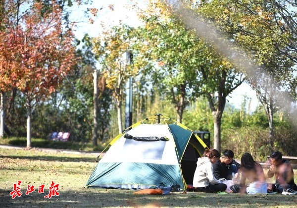 11月10日,冬日暖阳洒满武汉,东湖国家湿地公园的银杏、荻花和乌桕树叶在暖阳照射下呈现出绚丽的色彩,市民来此休闲打卡,沐浴着冬日的暖阳。长江日报记者高勇 摄