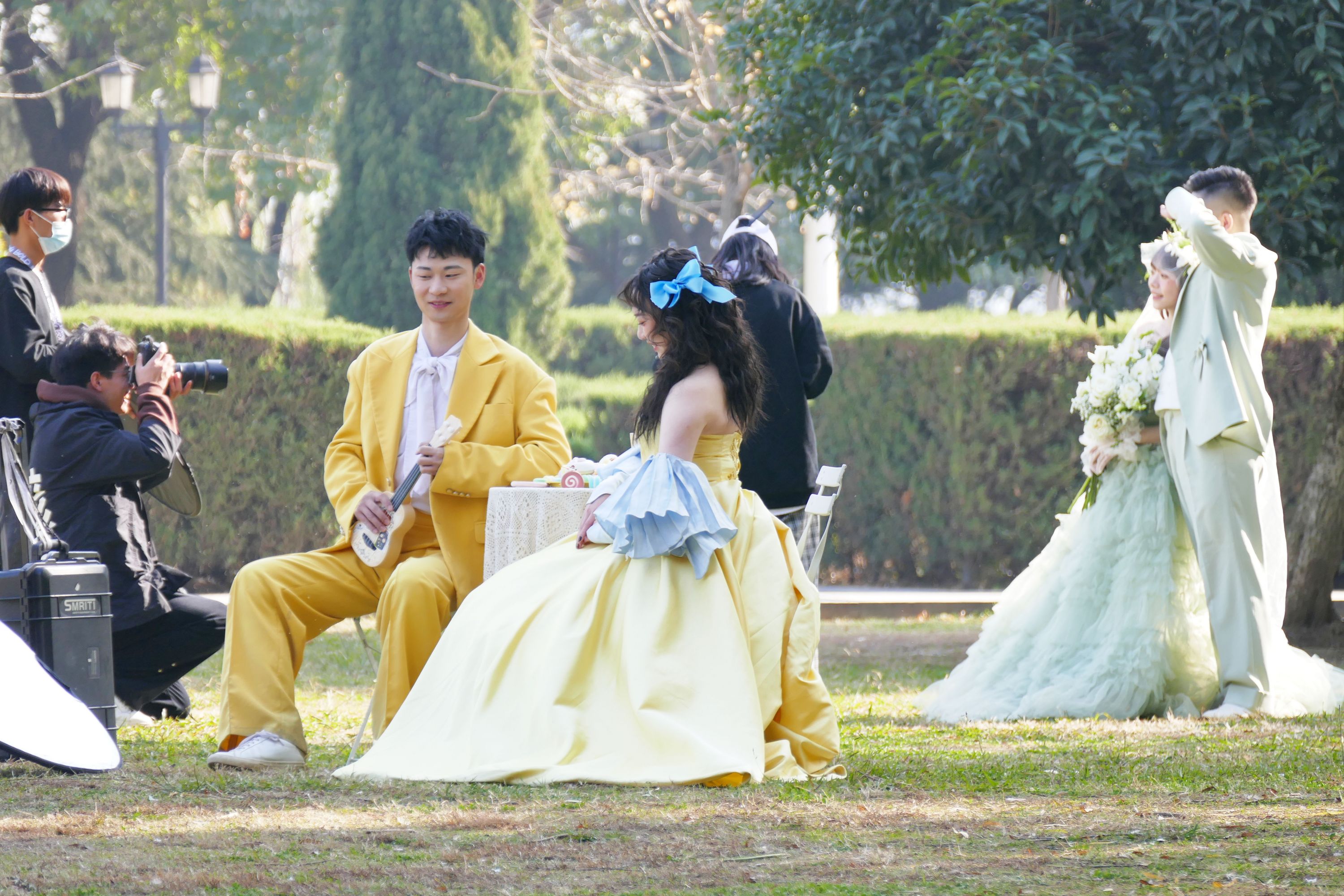 12月6日,记者在汉口江滩看到拍摄婚纱照的新人们在摄影师的指导摆出甜蜜的造型将美好瞬间定格。长江日报记者詹松 摄