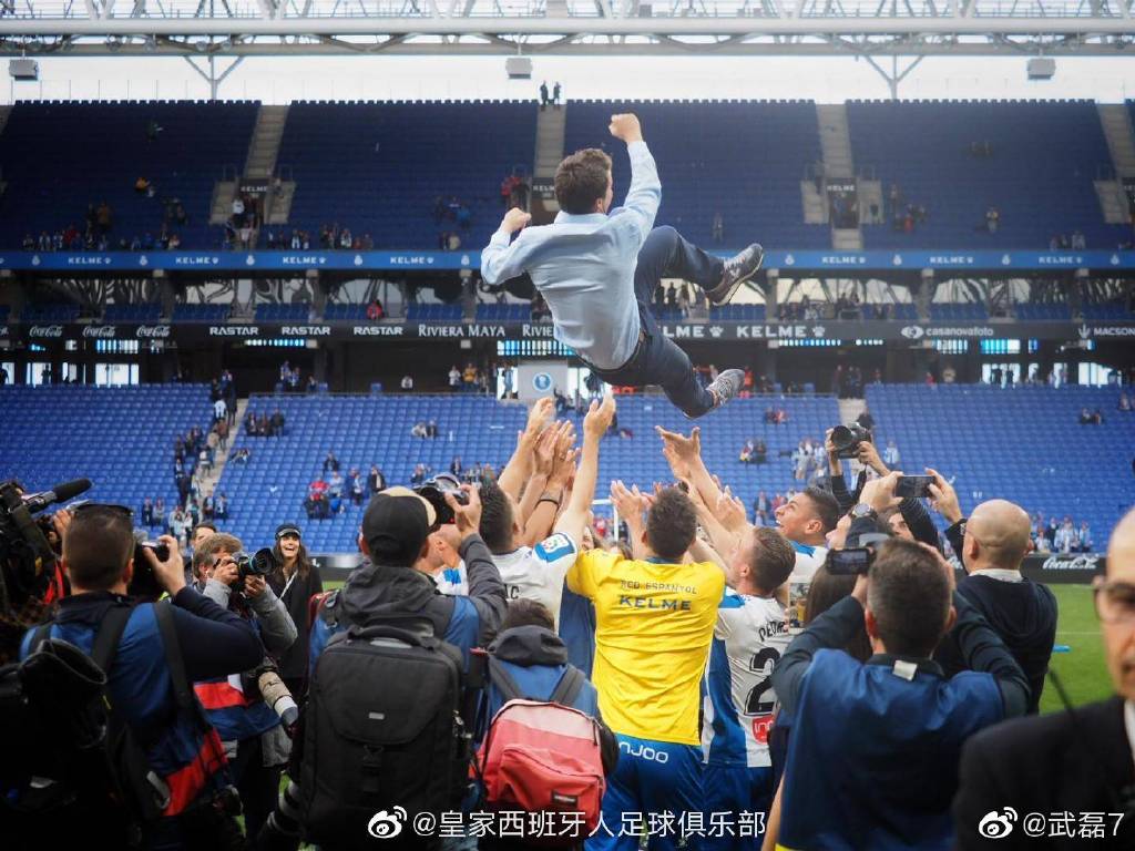 西班牙人球员高高抛起主帅鲁比。