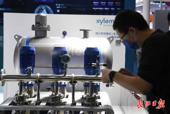 塞莱默公司展示的罐式管网叠压供水机组。 记者高勇 摄