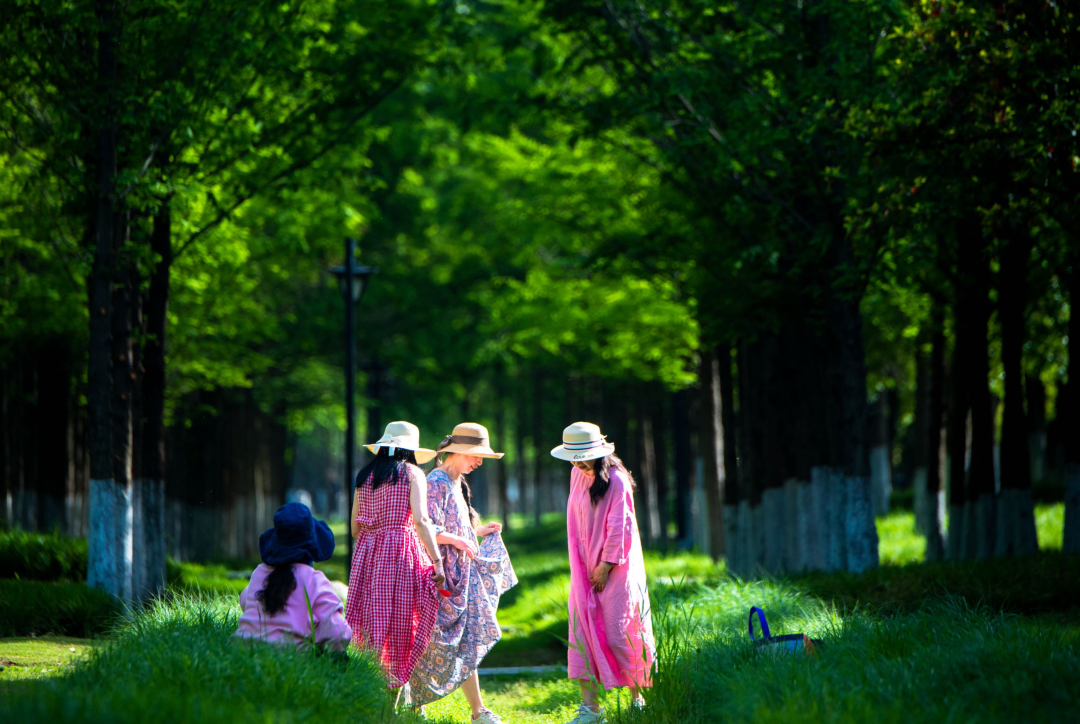 初夏的江滩,阳光和煦,微风不燥,绿阴覆盖,宛如仙境一般。