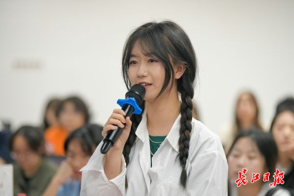 5月12日,武汉理工大学船海与能源动力工程学院学生孔娅婉在座谈会上发言交流。长江日报记者吕诗文 摄