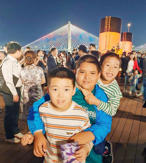 两个小朋友手拉着手,在夜色阑珊的江滩台阶上畅想未来。“如果有朝一日,‘知音号’能开到赛里木湖那该多好啊!到那时我就能在赛里木湖上给你们全家讲述不一样的‘知音号’故事了.....”笑声里写满了艾力库特的期盼。
