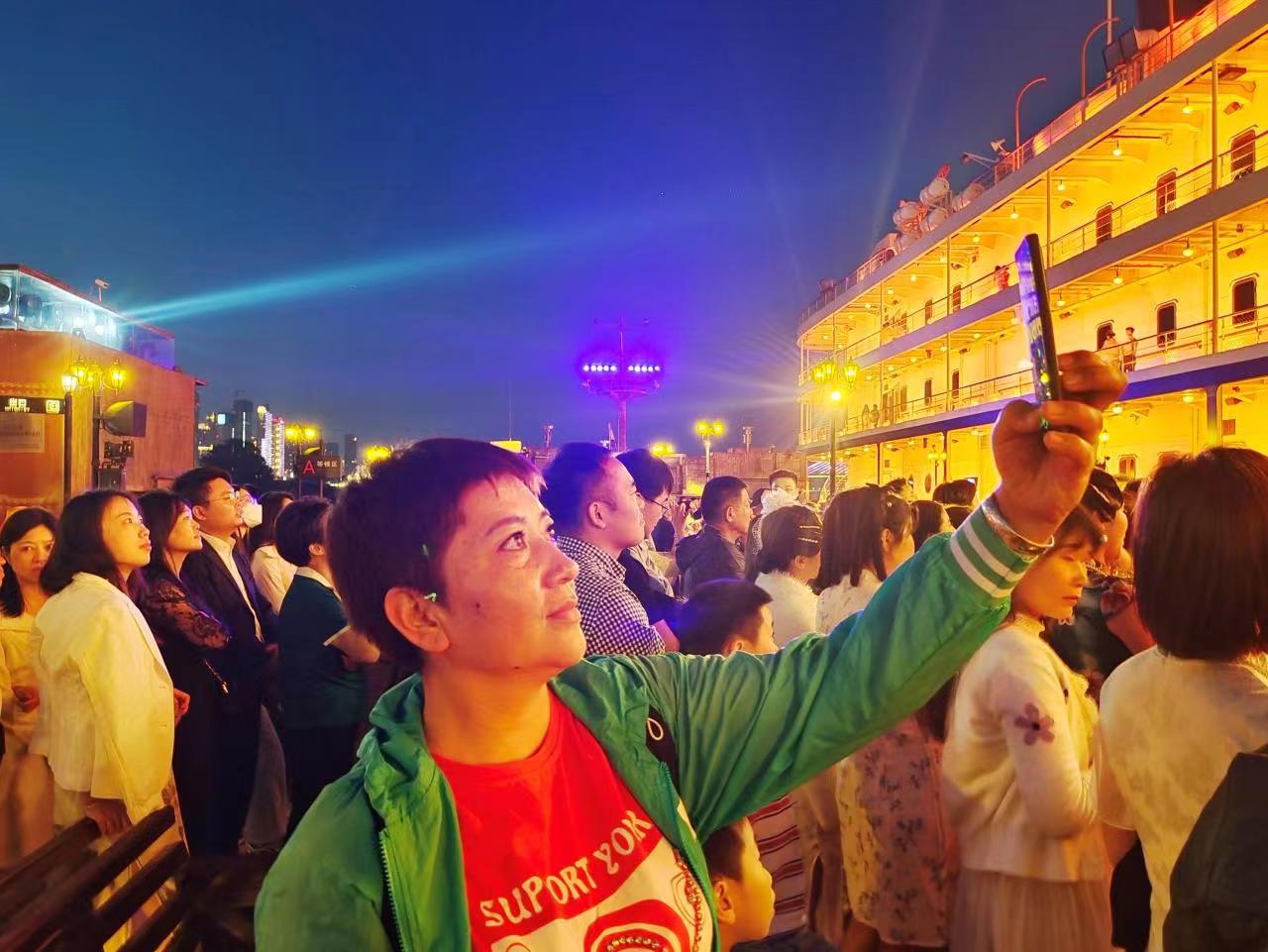 在“知音号”顶层甲板上,居马洪一家三部手机更是拍个不停,居马洪感叹道:两江四岸高楼大厦错落有致,绚丽多彩的灯光秀伴随着优美的音乐……美景使人目不暇接,陶醉在五彩斑斓的世界里。