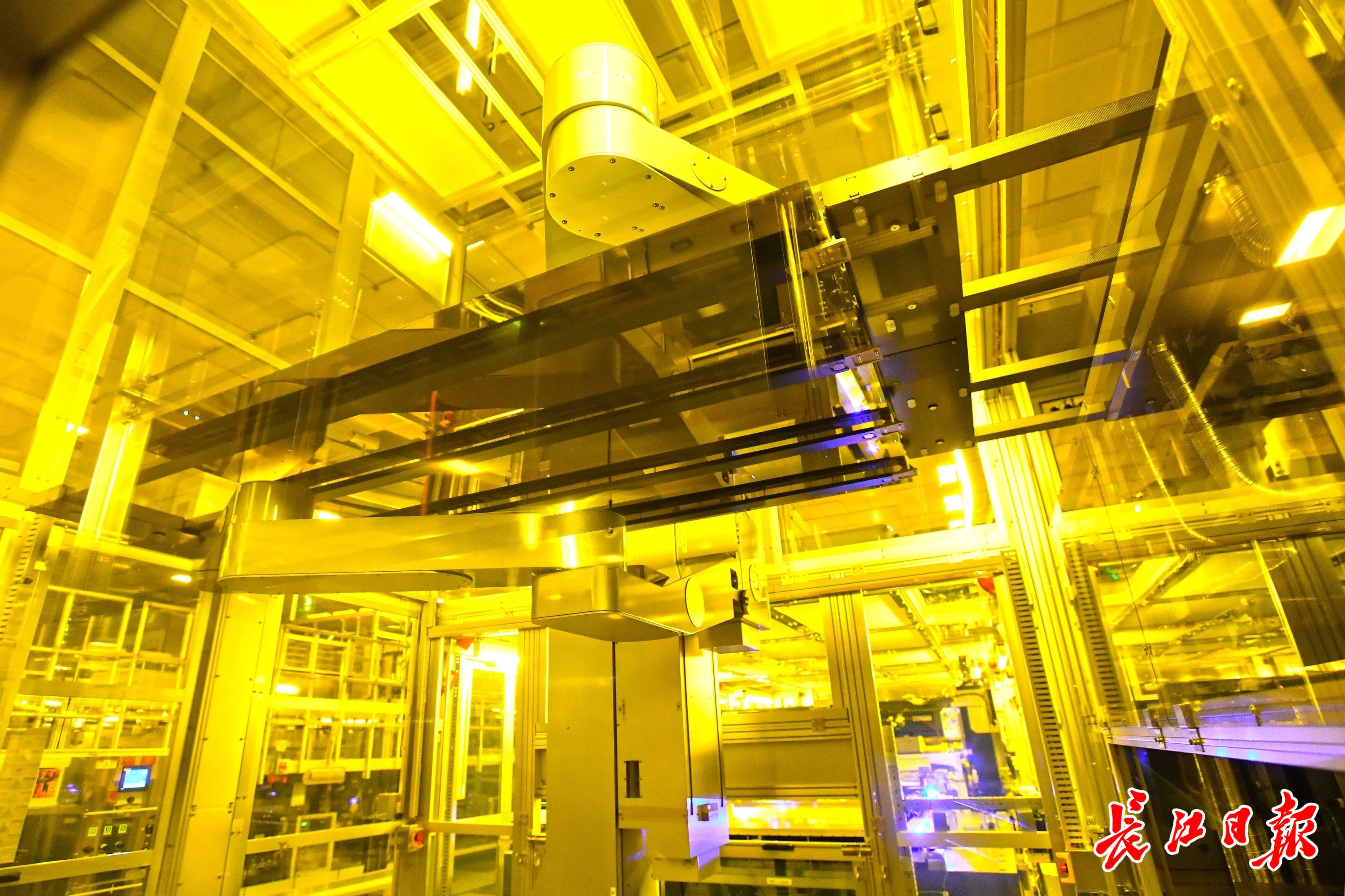 TCL华星武汉基地的T4柔性屏生产线,机械手臂正繁忙转运着柔性屏。长江日报记者周超 摄