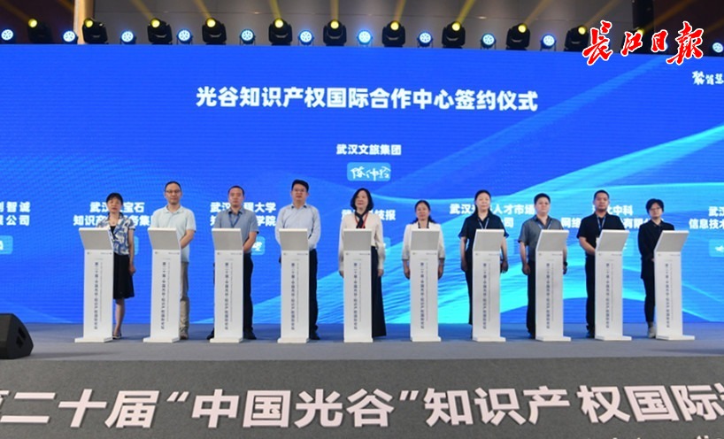 长江日报大武汉客户端5月16日讯 5月16日,第二十届“中国光谷”知识产权国际论坛开幕式在光谷科技会展中心举行,武汉文旅集团携旗下建设运营的光谷知识产权国际合作中心项目(IPIC)亮相,现场9家单位签约入驻,签约额超3亿元。